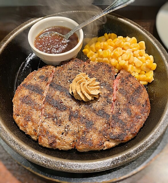 ワイルドハンバーグがツートンカラー いきなり ステーキ はっちの蒸し豚