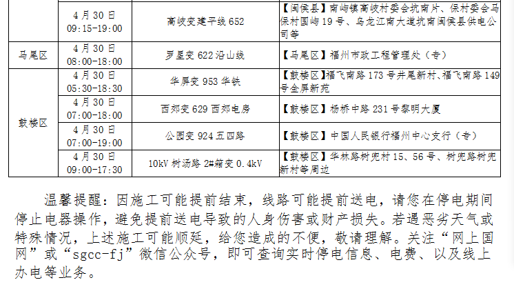 紧急通知 福州这些地方近期将停电 停水或停气 有你家